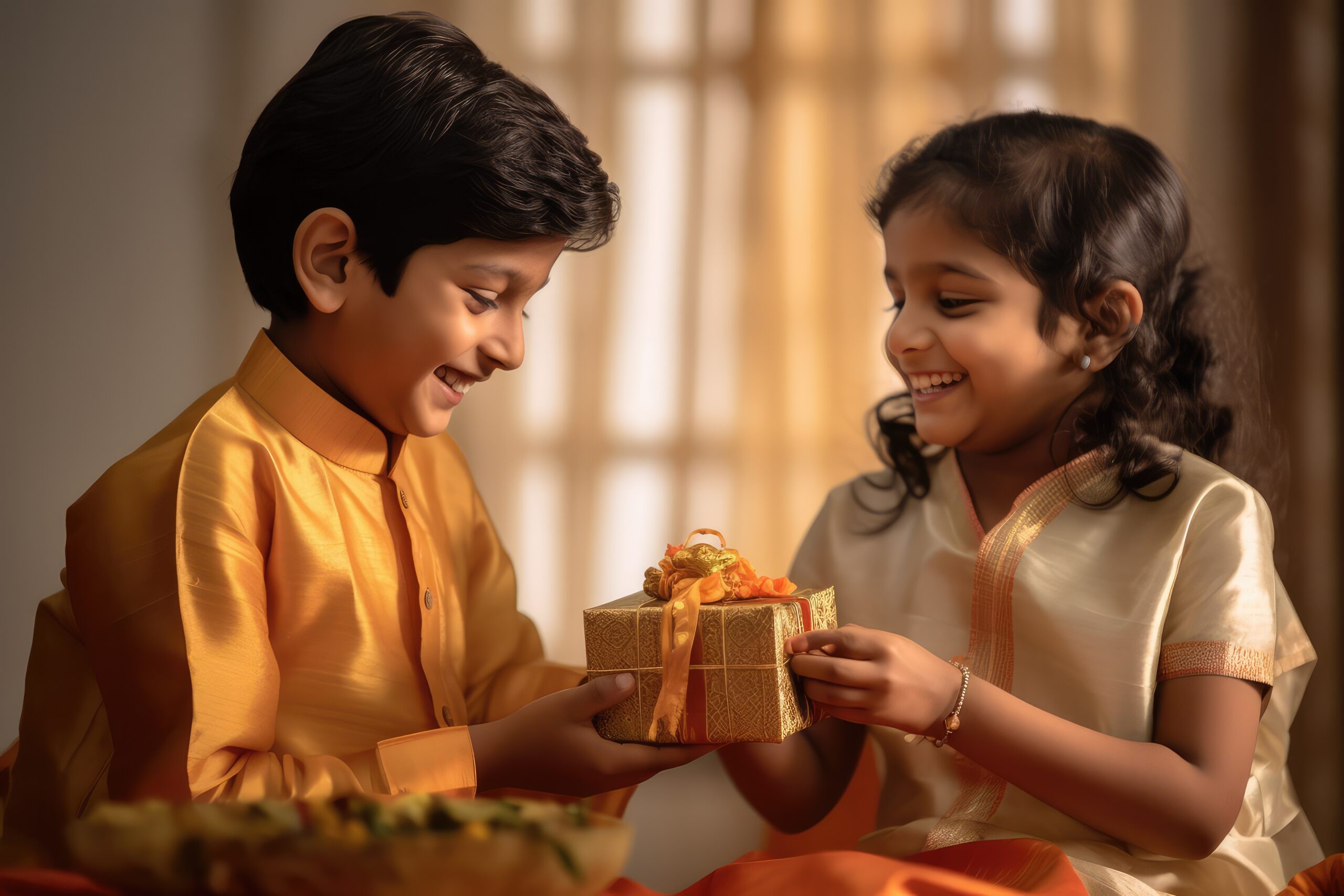 - भावंड एकमेकांना मिठाई खाऊ घालतात.