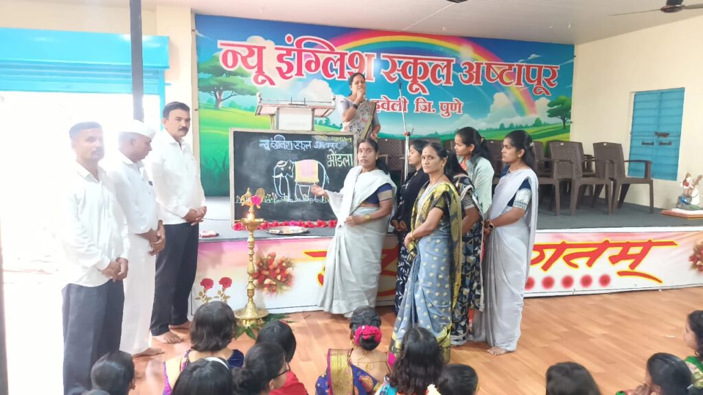 अष्टापुर (ता. हवेली, जि. पुणे) येथील आचार्य अत्रे विकास प्रतिष्ठान पुरंदर संचलित न्यू इंग्लिश स्कूल अष्टापुर येथे नवरात्रोत्सवानिमित्त महाभोंडल्याचा कार्यक्रम उत्साहात पार पडला. या कार्यक्रमाचे उद्घाटन गावच्या सरपंच सौ. पुष्पाताई सुरेश कोतवाल, श्री. सुरेश दत्तू कोतवाल, मुख्याध्यापक सुभाष काळे आणि महिला शिक्षिकांच्या हस्ते हस्ती पूजन करून करण्यात आले.
